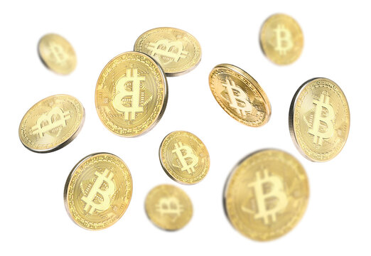 Golden coin suspended mid-air with dramatic lighting effect.