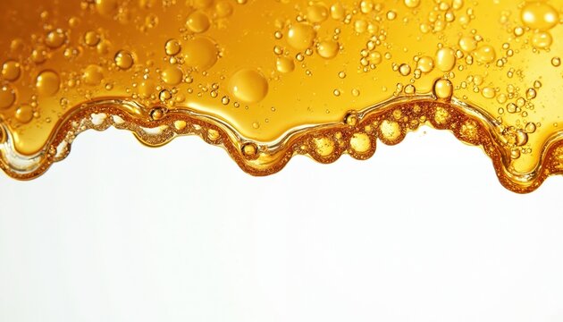 Golden cannabis wax resin drips with air bubbles. Sticky concentrate detail isolated on white background. Organic extract macro view for medical or recreational use.