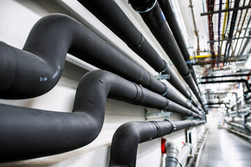 Laying of engineering networks. Ventilation pipes. Air conditioning of buildings. Pipe installation. Technical floor. Maintenance of cable networks.