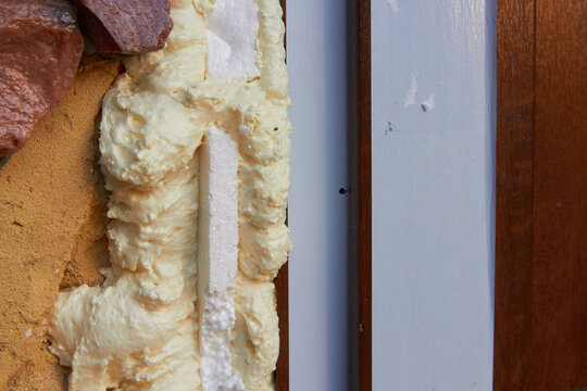 Air sealing foam application around window frames during home improvement Generative AI