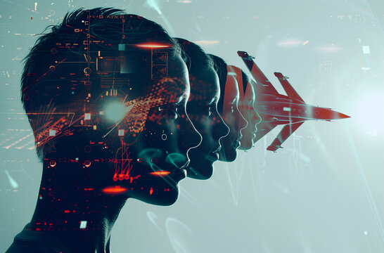 Jet fighter interceptors and pilots, collage