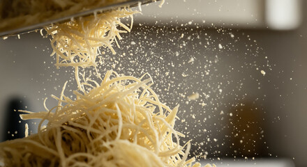 Tangling fraying natural fibers on cream surface for textile texture and craft design