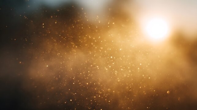 Sparkling snow drift catching hazy sunrise light with airborne crystals and pastel glow