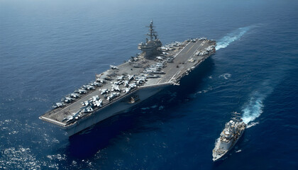 Aircraft carrier battleship military navy nuclear ship carrier and loading fighter jet aircraft