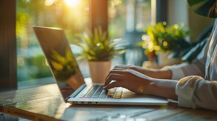 Fashion designer sewing in sunlit studio