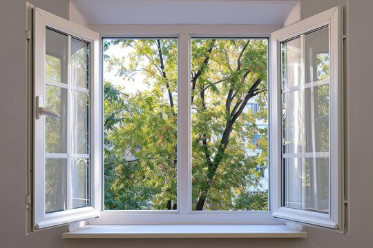 Fresh Air Ventilation: Opened PVC Window in a Sunny Home