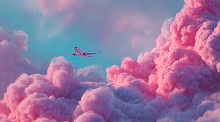 Flight through clouds at sunset captures the beauty of aviation soaring high above the horizon with striking colors illuminating the sky