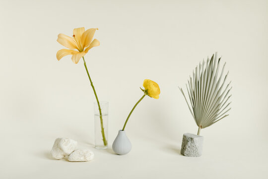 Serene Minimalist Room Sunlight Illuminates Dried Flowers Peaceful Atmosphere
