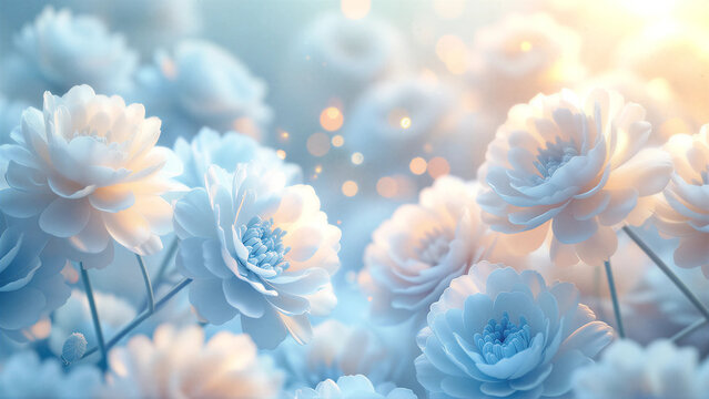 A soft and airy background of fluffy blue and white feathers, creating a dreamy and gentle texture.