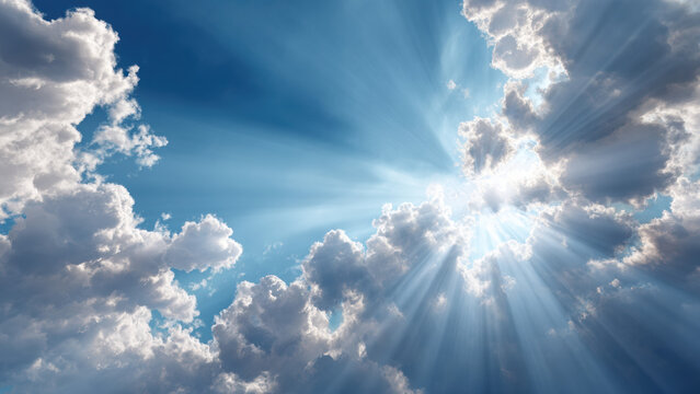 Radiant Sunlight Piercing Through Cloudy Blue Sky