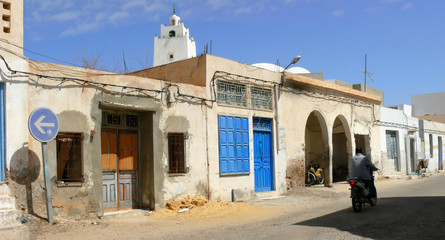 Tunisia, Djerba, , street and buildings of Ajim town. Djerba island. Northern Africa.