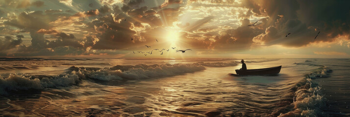 Crossing sunset from mainland, El Djorf to Djerba.Tunisia