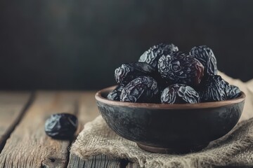 Delicious ajwa dates ( kurma nabi ) or Prophet's Dates. Kurma Ajwa over black fabric texture