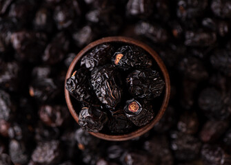 Dates fruit in wooden bowl