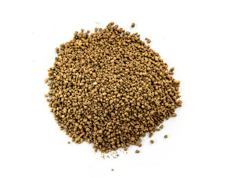 Textured brown akadama soil heap, white background
