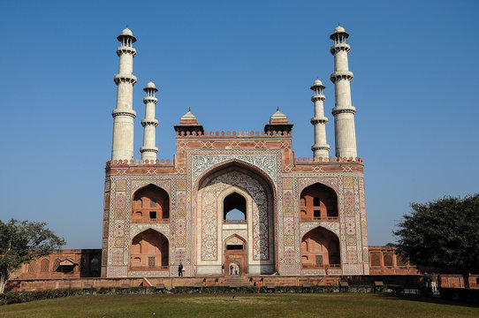 Akbar's Tomb's entrance in Sikandra, a suburb of Agra, Uttar Pradesh, India.of external Built to imitate the Buland Darwaza at Fatehpur Sikri, the city, Akbar founded