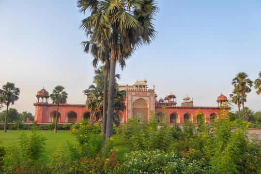 SIKANDRA, INDIA, OCTOBER 14, 2017 - Akbar Tomb in Sikandra, near Agra, Uttar Pradesh state, northern India, Asia
