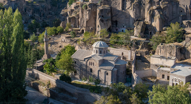 View of St. Gregory's Church (Buyuk Kilise Camii Mosque) in Monastery Valley Or Manastir Vadisi, Guzelyurt, Aksaray Province, Cappadocia, Turkey