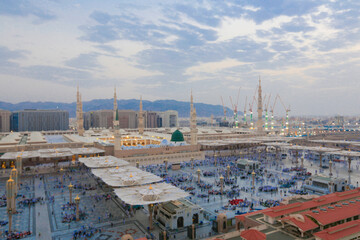 Atmospere around of Al-Masjid al-Nabawi in Al Haram that a mosque established by the Islamic prophet Muhammad, situated in the city of Medina in Saudi arabia.