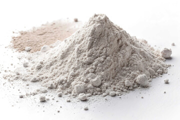 A small conical pile of fine, light gray powder isolated on a plain white background.