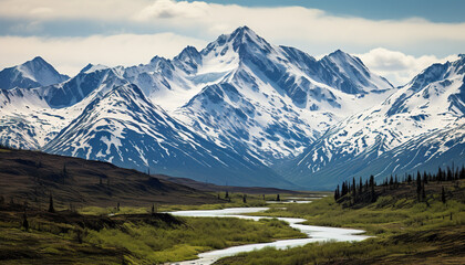 Alaska Mountains landscape in Glacier Bay Alaska, United States, USA. Vacation cruise travel destination.
