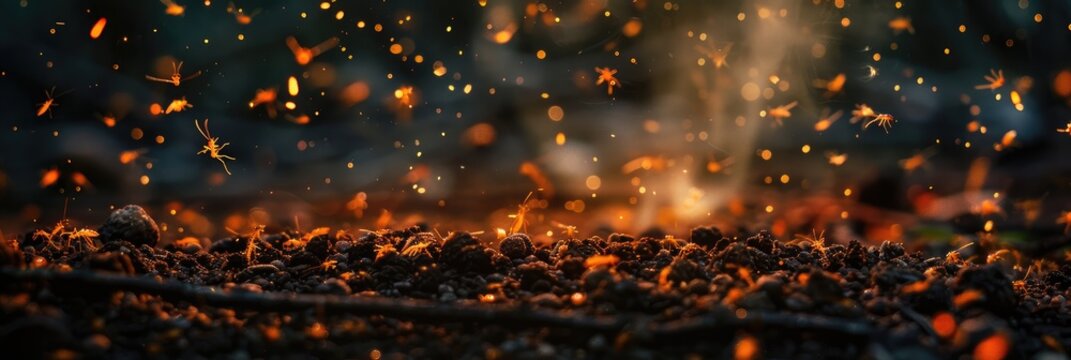 Night motion blur of Termite Flying or alates around fire in rainy season