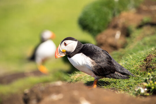 Atlantic puffins, the common puffin, seabird in the auk family, on the Treshnish Isles in Scotland UK