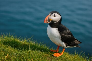 Seabird nesting on rugged island cliffs featuring black and feathered puffins, wildlife conservation, Earth Day