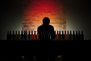Alcoholic Silhouette: Portrait of Addiction, Drinking Problem and Alcoholism with Bottles