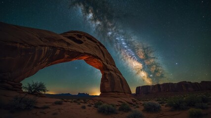 Stargazing and camping underneath corona arch with milky way galaxy illuminating the night sky.