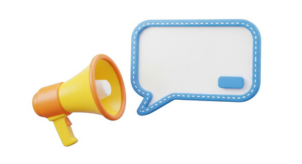 Bright yellow megaphone with white speech bubble for announcements and messages