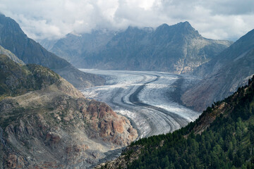 Majestic Great Aletsch Glacier in Swiss Alps. Valais, Switzerland