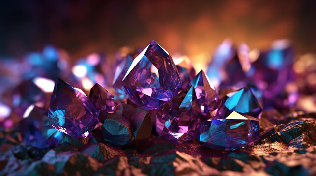 Amazing bright and shiny Alexandrite crystal cluster background. Jewel mineral detailed macro. Generative AI