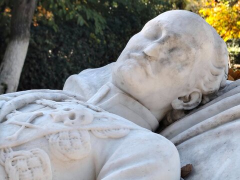 Closeup view of the tomb monument of Alexandros Ypsilantis (1792-1828) at Pedion tou Areos public park. He was one of the leaders of Filiki Etaireia organization.