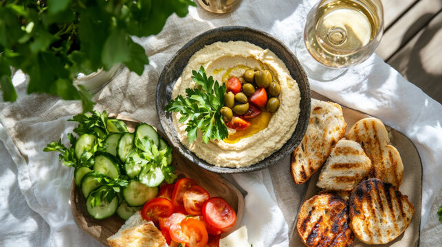 Mediterranean Hummus Platter with Grilled Bread and Vegetables