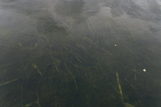 Green algae on the water - beautiful blurred background