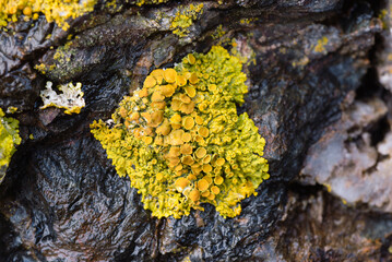 Common Orange Lichen on rocky intertidal zone in Maine