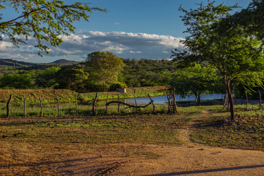 Branch of acacia with green leaves and thorns,  the Algaroba, Prosopis humilis,
