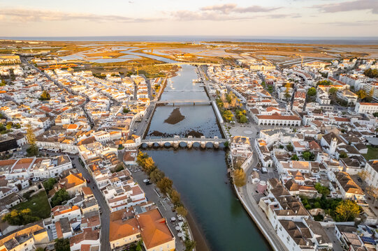 Aerial view of Ponta da Piedade, in Lagos, Algarve, Portugal. Cliff rocks on sea at Ponta da Piedade, Algarve region, Portugal
