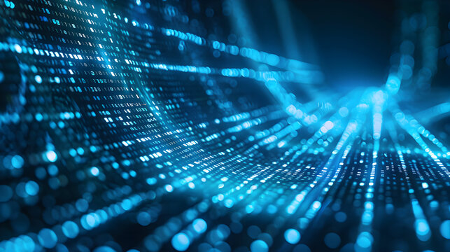 Futuristic binary code data stream background depicting digital technology