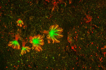 Natural occurring fluorescence in underwater Tuberculate Night Anemone (Alicia sansibarensis). Night dive at Kalabahi Bay, Alor Island, Indonesia