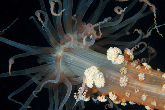 Alicia Mirabilis extends her tentacles in search of suspended particles during the marine night.