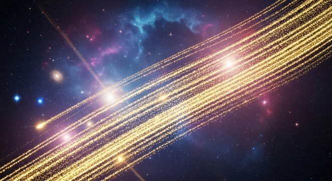 Cosmic symphony of golden streaks against a starlit galactic canvas exploration