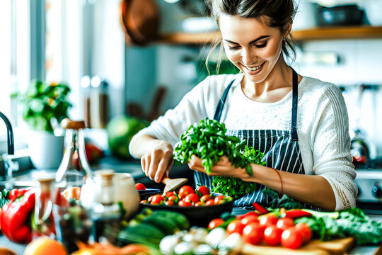 Femme préparant des légumes dans sa cuisine