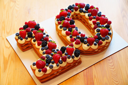 cake with berries in the form of the number ten.