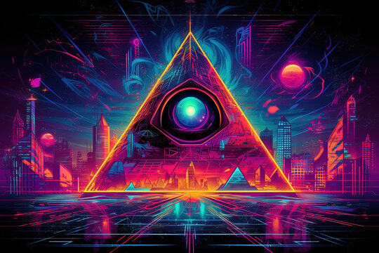 Eye of Horus secret society illuminati conspiracy. All seeing eye pyramid. New world order conceptual image.