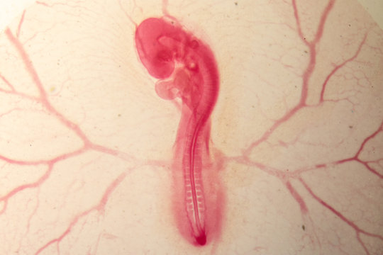 Development of the embryo chicken,The development of the chick on the slide under microscope.