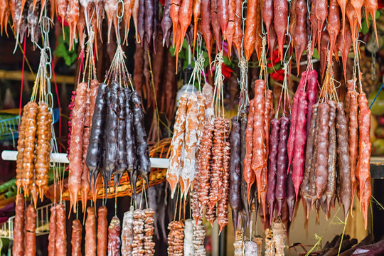 Traditional Georgian sausage-shaped candies, the churchkhela, also called the Georgian snickers.