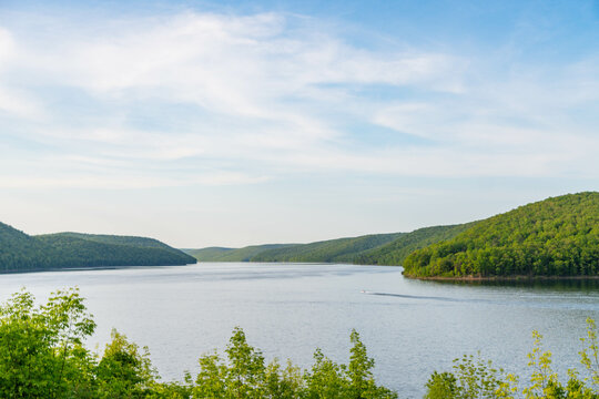 Allegheny National Forest Pa Kinzua point mountain lake, copy space graphic resources, summer activity