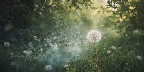 Close-up of a blowball dandelion with soft bokeh background for floral pattern backgrounds or nature-themed layouts